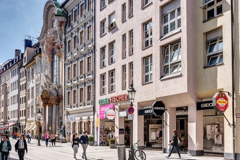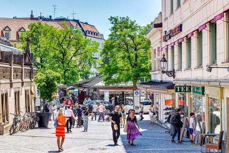 步行区内有满足日常需求的商店、许多小商店、百货商店和大型专卖店。维克图阿连市场(Viktualienmarkt)每天都有新鲜食品供应