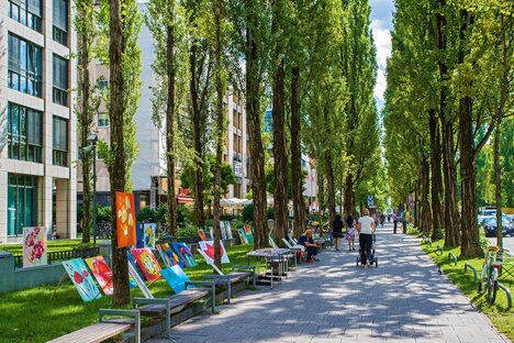前艺术家区,美丽的老建筑与不太吸引人的战后建筑交错在一起,由于靠近大学,特别受学生欢迎。此外,许多律师、保险公司和医生的办公室都在这里。